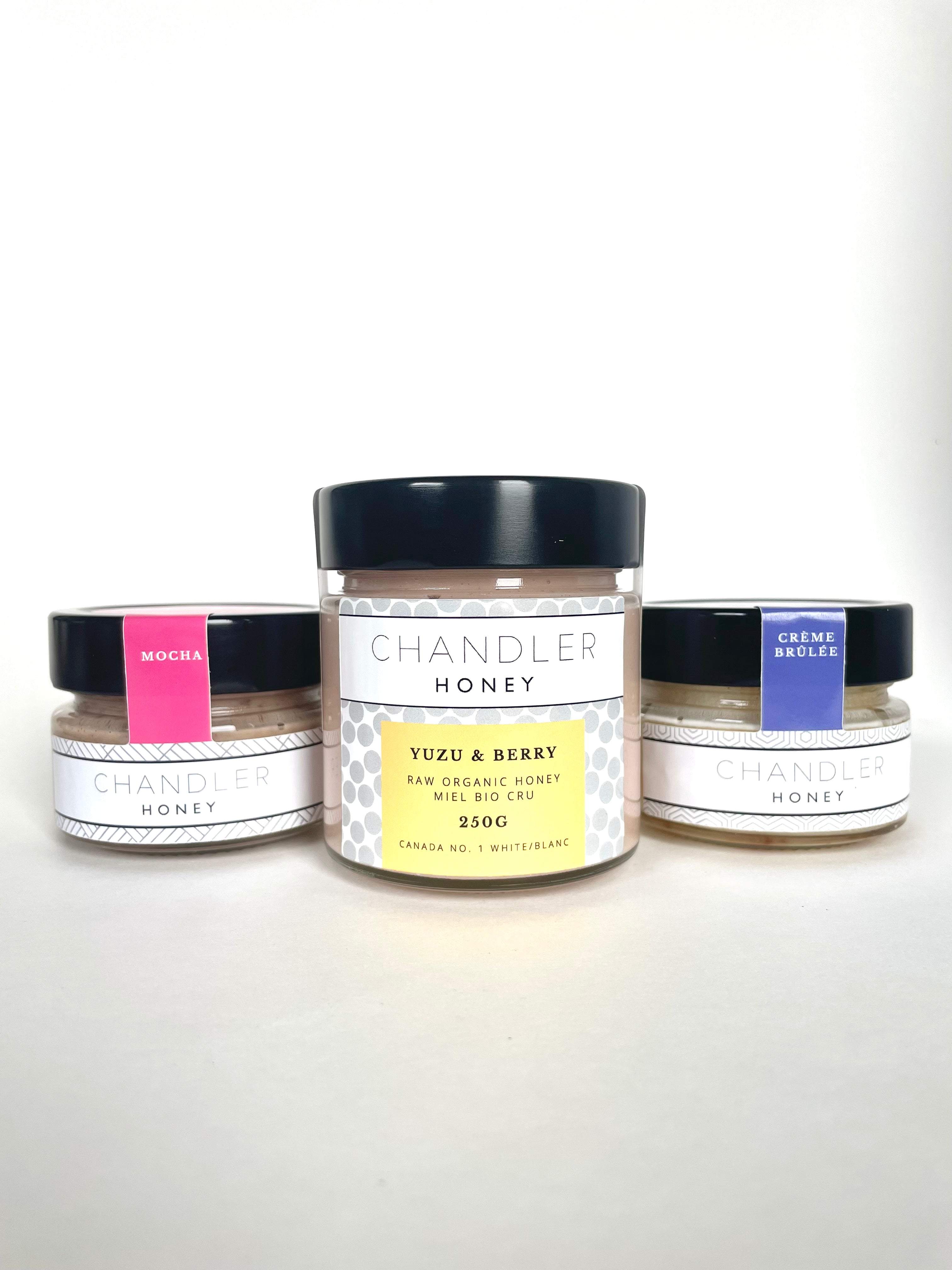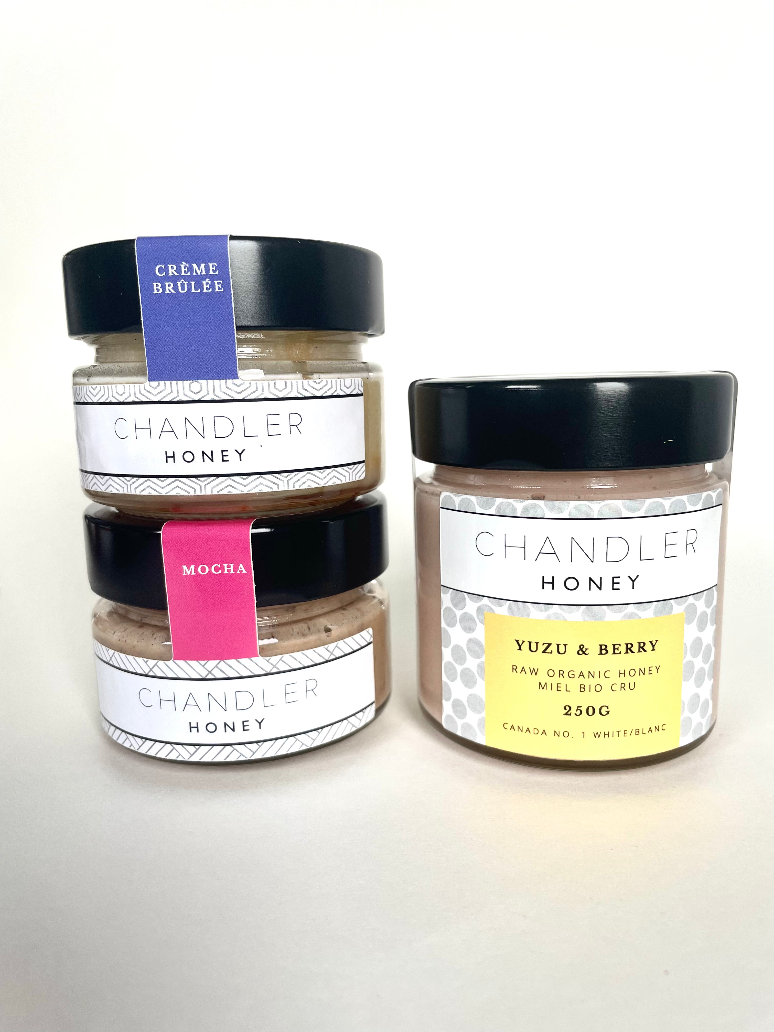 All honey is sourced exclusively from the Chandler family farm in Scandia, Alberta (Scandia Honey Company), which has been in operation since 1937. With a single supplier, we can be sure our honey is pure, unadulterated, and fresh. Our team personally prefers the light colour and flavour of Canadian prairie honey to all else. Here is a link to more information about our process and some FAQs.